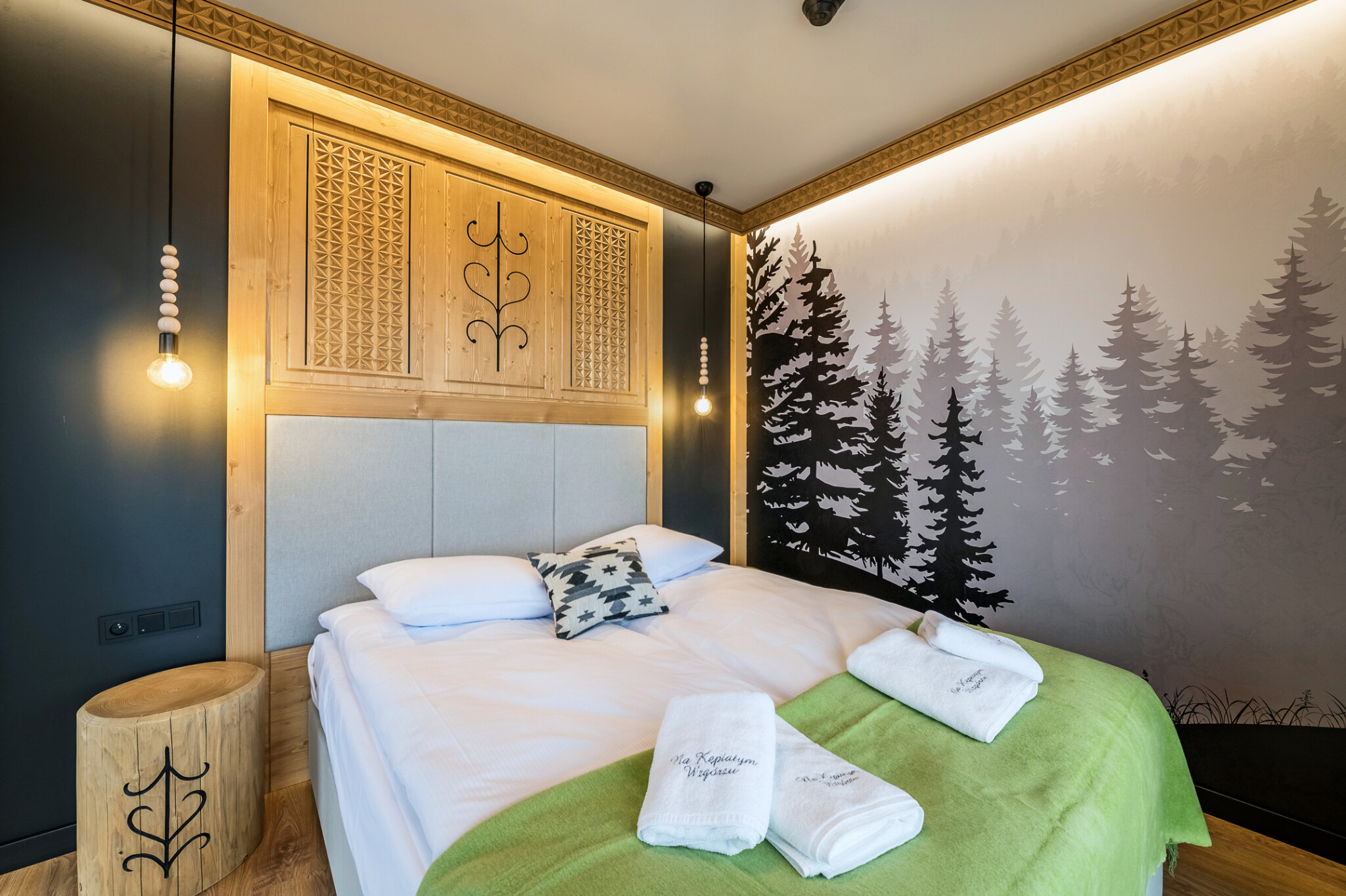 Urządzony został z dbałością o szczegóły, a jego wyposażenie jest wyjątkowe. Od przestronnej sypialni z szerokim łóżkiem małżeńskim, poprzez wygodną sofę z funkcją spania dla gości, aż do luksusowej łazienki z prysznicem – wszystko to sprawia, że jest to wyjątkowe miejsce do wypoczynku. Przestrzeń jest dobrze oświetlona, a okna zapewniają niesamowity widok na Tatry.